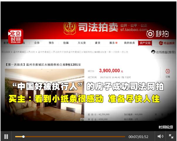 “非常欢迎你们入住这间记录了我们幸福生活的房子!”温州一房主因替朋友借款担保而承担债务,房子被司法网拍。 10月31日,温州一套公寓以390万的价格成交。司法网拍原本不稀奇,但这房子有故事:房主因替朋友借款担保而承担债务,离开前不仅把房子打扫干净,保持水电燃畅通,还留下个温馨的小纸条。当买主得知房子背后故事,感动之余表示“买得值”。 ”水电各处都通畅,我们给你们预留了几方天然气,这个时间可以帮到你们办理相关更名手续,南边次卧有红外线报警设施,如响了开关在门边箱子下。祝一切幸福安康!“
